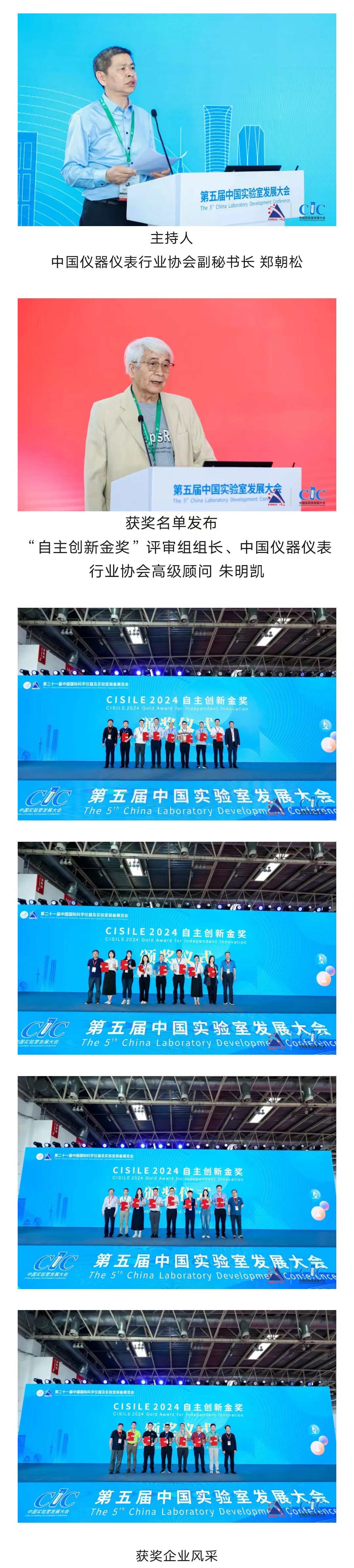 經過數月的等待,在2024年5月29日,第二十一屆中國國際科學儀器及實驗室裝備展覽會“自主創新金獎”頒獎典禮在北京落下帷幕,共有27家單位攜26個產品獲此殊榮(包含聯合申報一項),并現場向獲獎單位頒發了證書和獎杯。