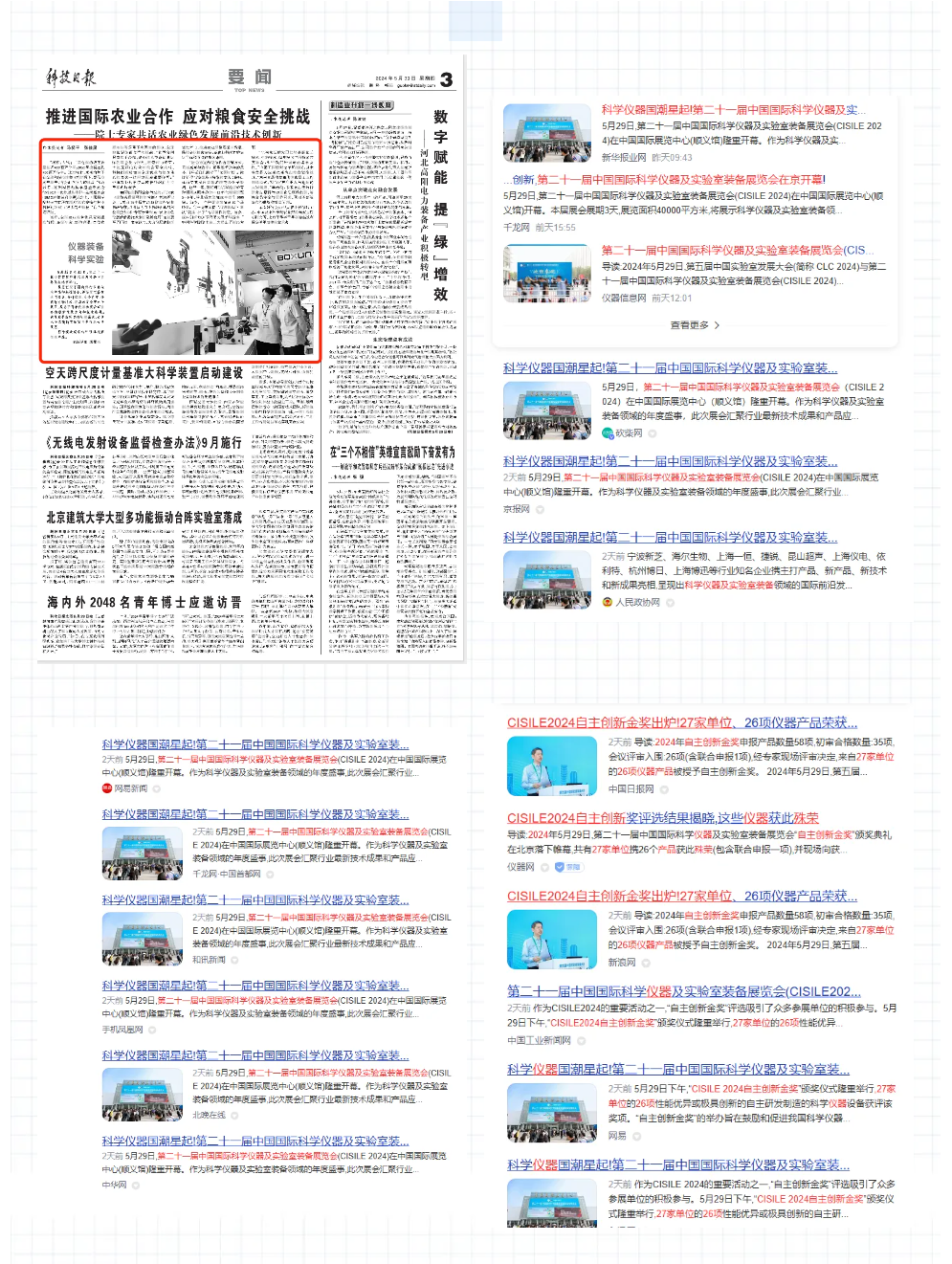 科技日?qǐng)?bào)、中國(guó)工業(yè)網(wǎng)、化工儀器網(wǎng)、儀器學(xué)習(xí)網(wǎng)、分析測(cè)試百科網(wǎng)、儀器信息網(wǎng)、儀表堂堂網(wǎng)等多家行業(yè)權(quán)威媒體對(duì)大會(huì)進(jìn)行了現(xiàn)場(chǎng)采訪報(bào)道,向全國(guó)乃至全球傳遞了CISILE 2024的盛況和亮點(diǎn)。