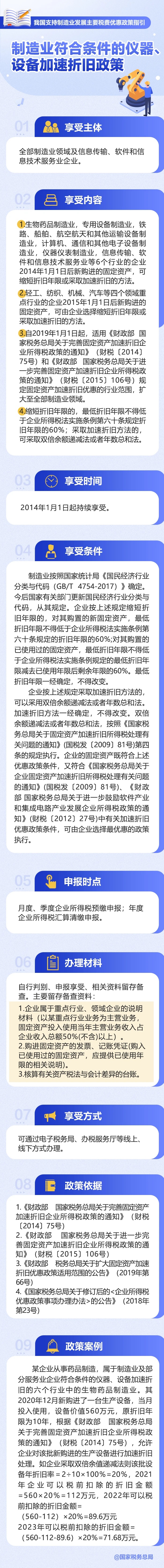 制造業(yè)是立國之本、強(qiáng)國之基,是實(shí)體經(jīng)濟(jì)的重要組成部分。中央經(jīng)濟(jì)工作會議指出,“落實(shí)好結(jié)構(gòu)性減稅降費(fèi)政策,重點(diǎn)支持科技創(chuàng)新和制造業(yè)發(fā)展”。為使大家更加全面熟悉了解政策、更加高效準(zhǔn)確適用政策,財(cái)政部、國家稅務(wù)總局近日發(fā)布《我國支持制造業(yè)發(fā)展主要稅費(fèi)優(yōu)惠政策指引》。今天帶你了解:制造業(yè)符合條件的儀器、設(shè)備加速折舊政策。