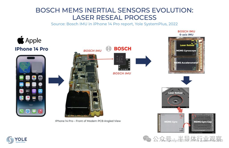 博世甚至推出了一項新的制造技術(shù)!其新的激光重新密封工藝顯著降低了壓力變化,從而最大限度地提高了 iPhone 14 Pro 內(nèi)慣性傳感器的性能。雖然該工藝比以前的工藝貴三倍,但它允許將 MEMS 陀螺儀和加速度計集成到同一個芯片上,從而進一步縮小傳感器體積,更好地控制腔內(nèi)真空度。