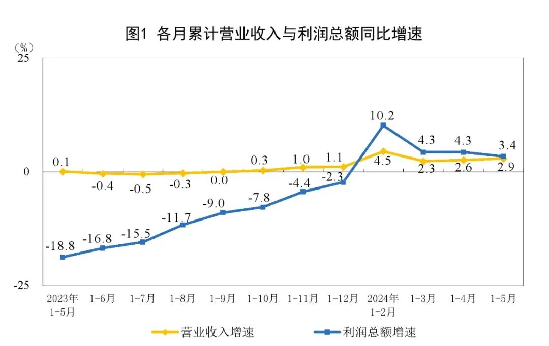 1—5月份,全國規(guī)模以上工業(yè)企業(yè)實(shí)現(xiàn)利潤總額27543.8億元,同比增長3.4%(按可比口徑計(jì)算)。