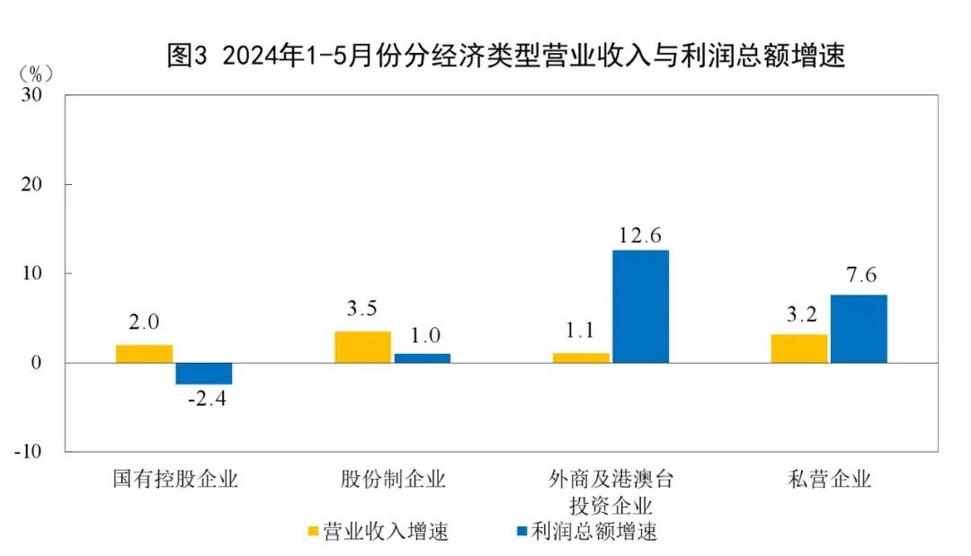 1—5月份,規(guī)模以上工業(yè)企業(yè)中,國有控股企業(yè)實(shí)現(xiàn)利潤總額9438.4億元,同比下降2.4%;股份制企業(yè)實(shí)現(xiàn)利潤總額20510.5億元,增長1.0%;外商及港澳臺(tái)投資企業(yè)實(shí)現(xiàn)利潤總額6827.8億元,增長12.6%;私營企業(yè)實(shí)現(xiàn)利潤總額7329.3億元,增長7.6%。