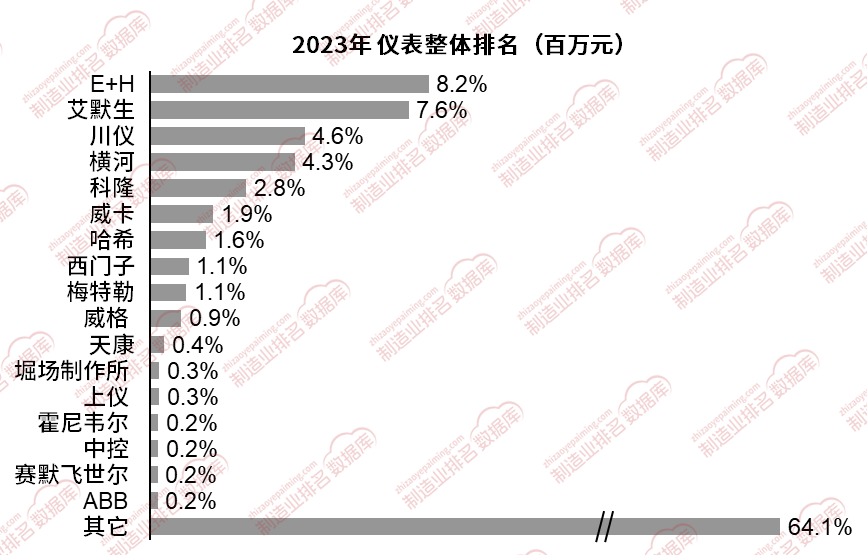 我國儀表行業目前市場集中度較低,全國儀表類整體的企業數量在2000~2500家,全國整體市場規模達到480億元,CR10市占率接近35%,其他廠商中主要為中小型地方性儀表的生產企業。未來隨著E+H、艾默生、等龍頭企業逐漸掌握關鍵技術,其市場地位會進一步穩固,其次是川儀、橫河、科隆等,川儀產品較全,橫河主要為壓力變送器和流量計,科隆主要為流量計。