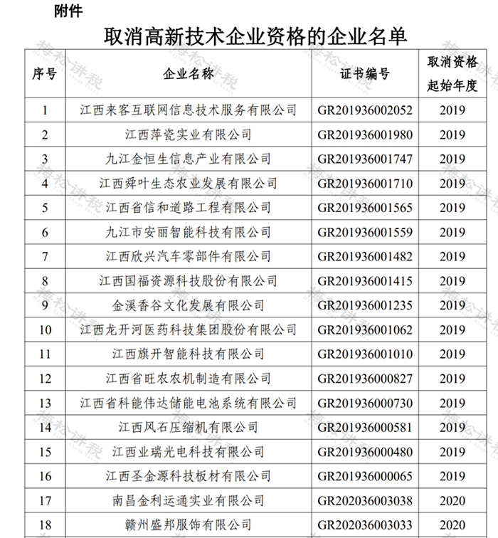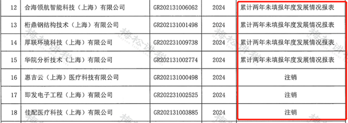取消原因包括:注銷;研發費用占比不達標;科技人員占比不達標;未正常開展經營活動;累計2年未填報年度發展報告等。