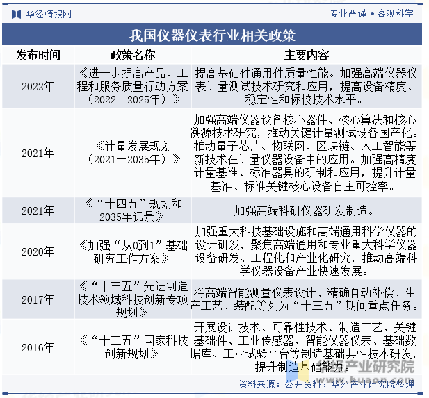 近年來我國密集出臺涉及儀器儀表行業(yè)及相關應用領域的產業(yè)政策,在政策支持下,隨著國內頭部企業(yè)逐漸突破核心技術和產品力兩大發(fā)展障礙,國內企業(yè)有望占據(jù)更高的市場份額。