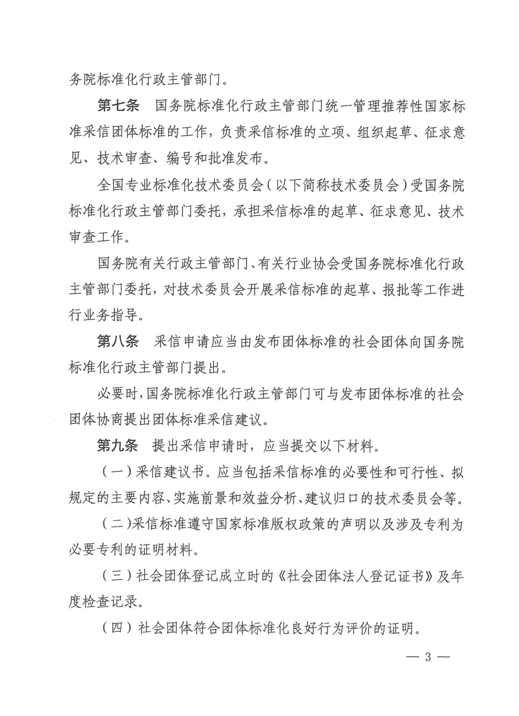 《推薦性國家標(biāo)準(zhǔn)采信團(tuán)體標(biāo)準(zhǔn)暫行規(guī)定》結(jié)合我國現(xiàn)有推薦性國家標(biāo)準(zhǔn)和團(tuán)體標(biāo)準(zhǔn)特點(diǎn),在推薦性國家標(biāo)準(zhǔn)工作機(jī)制基礎(chǔ)上,暢通渠道、簡化程序、縮短時(shí)間,規(guī)范國家標(biāo)準(zhǔn)采信團(tuán)體標(biāo)準(zhǔn)程序。