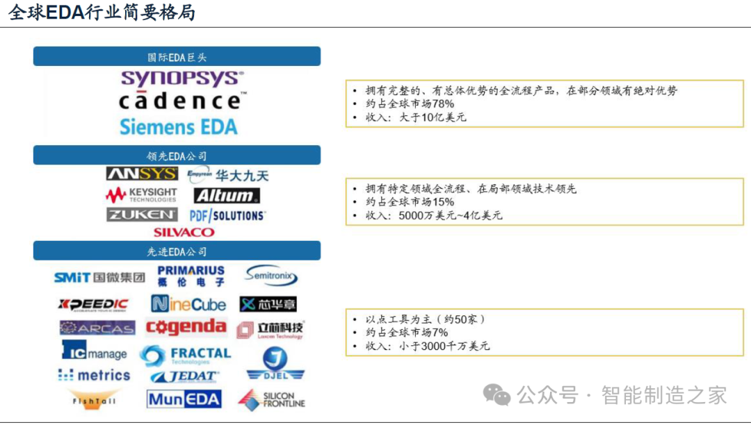 2008年4月,國務(wù)院通過了國家科技重大專項“核心電子器件、高端通用芯片及基礎(chǔ)軟件產(chǎn)品”(簡稱“核高基”),為EDA行業(yè)提供了強有力的支持和鼓勵。在此背景下,國內(nèi)EDA本土企業(yè)如雨后春筍般涌現(xiàn)。2009年6月,中國華大集成電路設(shè)計集團有限公司的EDA部門獨立,承載了“熊貓系統(tǒng)”基因的華大九天正式成立。經(jīng)過十多年的發(fā)展,華大九天已成為國內(nèi)規(guī)模最大、產(chǎn)品線最完整、綜合技術(shù)實力最強的EDA企業(yè)。