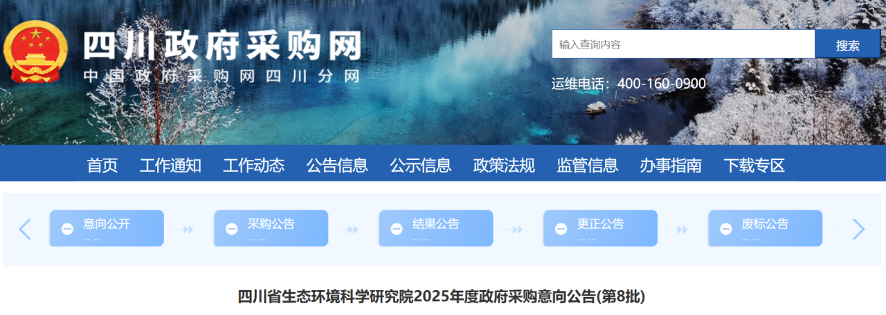 為便于供應商及時了解政府采購信息,根據《財政部關于開展政府采購意向公開工作的通知》(財庫〔202010號)等有關規定,現將四川省生態環境科學研究院2025年度(第8批)采購意向公開如下: