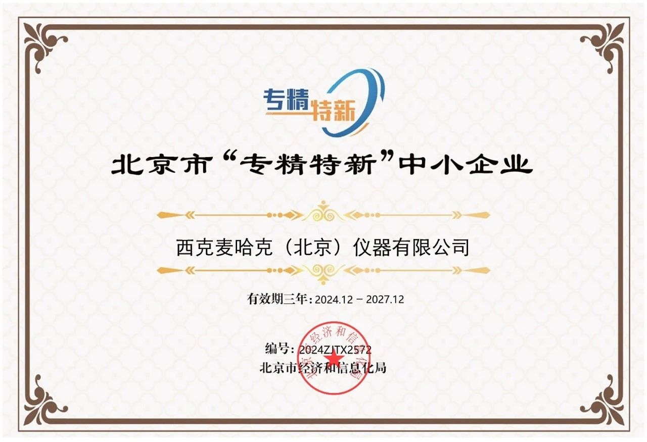 近日,北京市經濟和信息化局發布2024年度第三季度專精特新中小企業名單。西克麥哈克(北京)儀器有限公司憑借領先的技術能力,豐富的應用經驗與不懈的創新精神獲評北京市專精特新中小企業。