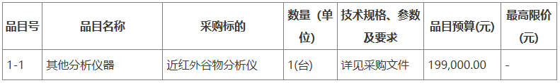 項目名稱:近紅外谷物分析儀采購