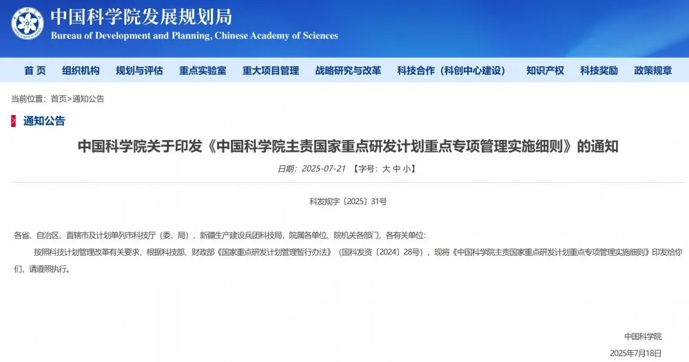 中國(guó)科學(xué)院正式印發(fā)《中國(guó)科學(xué)院主責(zé)國(guó)家重點(diǎn)研發(fā)計(jì)劃重點(diǎn)專項(xiàng)管理實(shí)施細(xì)則》(以下簡(jiǎn)稱《細(xì)則》)。