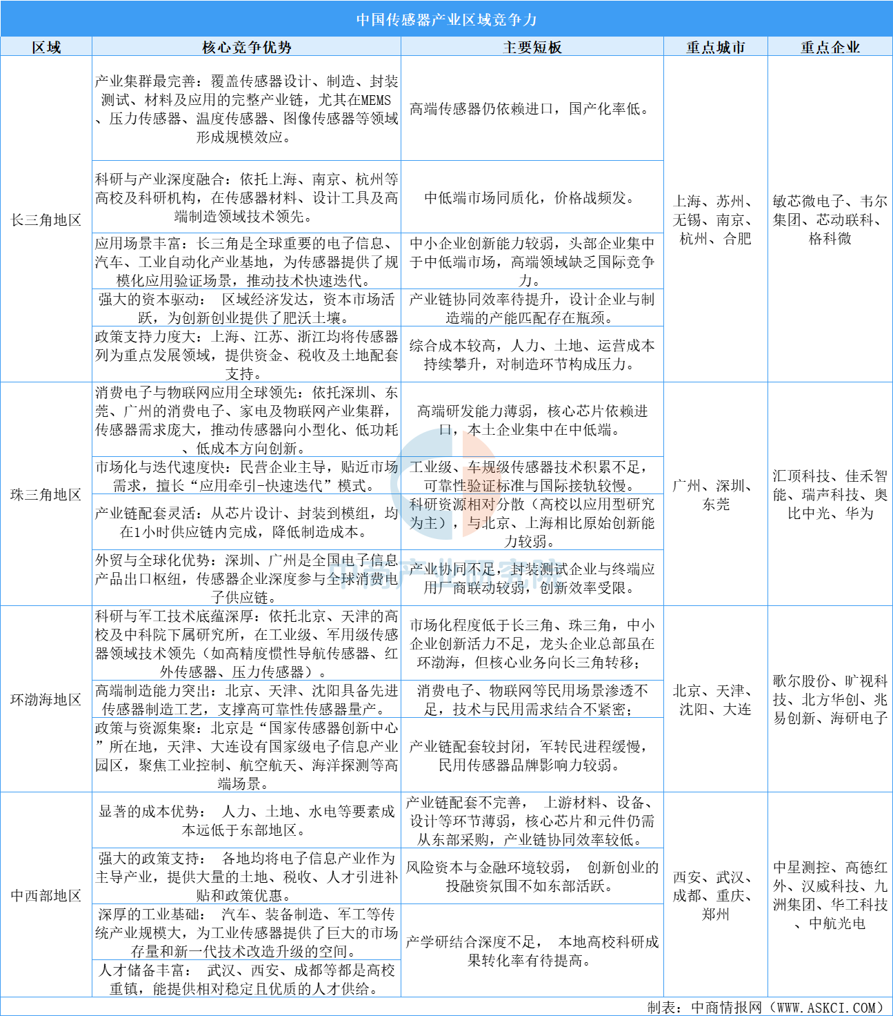 傳感器區域競爭力對比