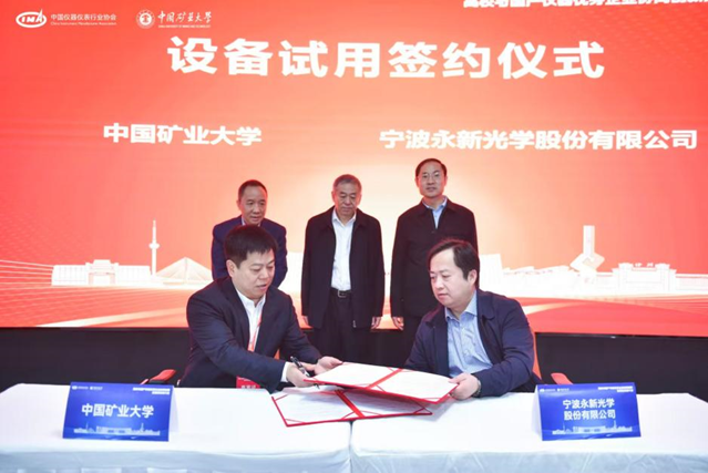 此次活動促成了寧波永新光學股份有限公司,先臨三維科技股份有限公司、成都玖錦科技有限公司、中國科學院合肥物資科學研究院4家企業(yè)與礦大簽訂設備試用協(xié)議。工信部裝備工業(yè)一司原一級巡視員苗長興、協(xié)會秘書長李躍光、礦大副書記李江濤共同見簽,礦大實驗室與設備管理處處長吳祝武代表礦大與企業(yè)簽約,通過此次設備試用協(xié)議的簽訂及合作平臺的搭建,開啟了校企儀器應用與技術合作的嶄新篇章,為國產儀器的市場化應用注入了新的動力。