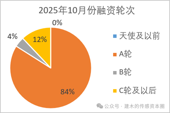 202510月份的25起融資事件中,84%的融資落在了A輪階段,沒有出現天使輪融資,B輪及以后階段的融資大幅減少。
