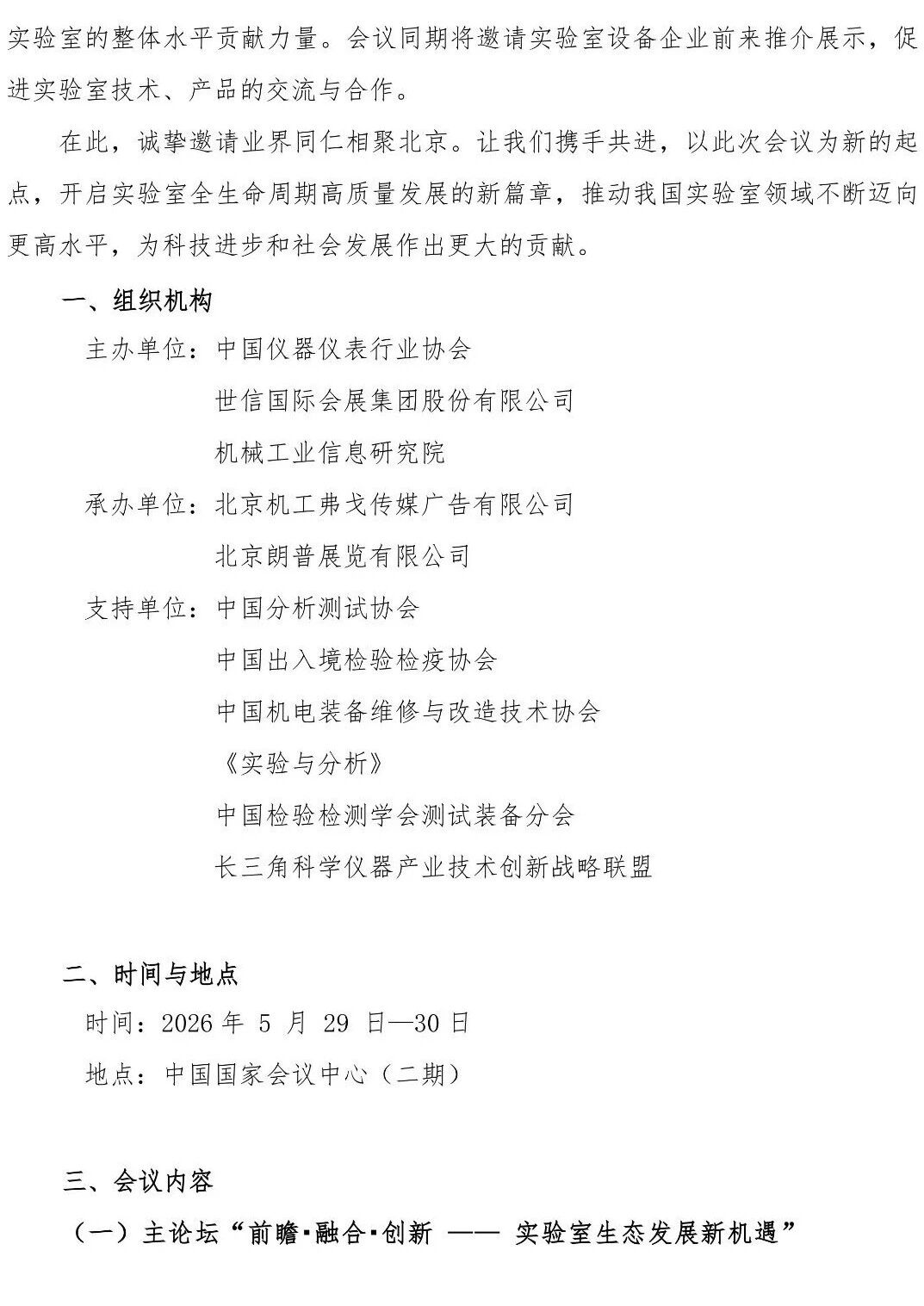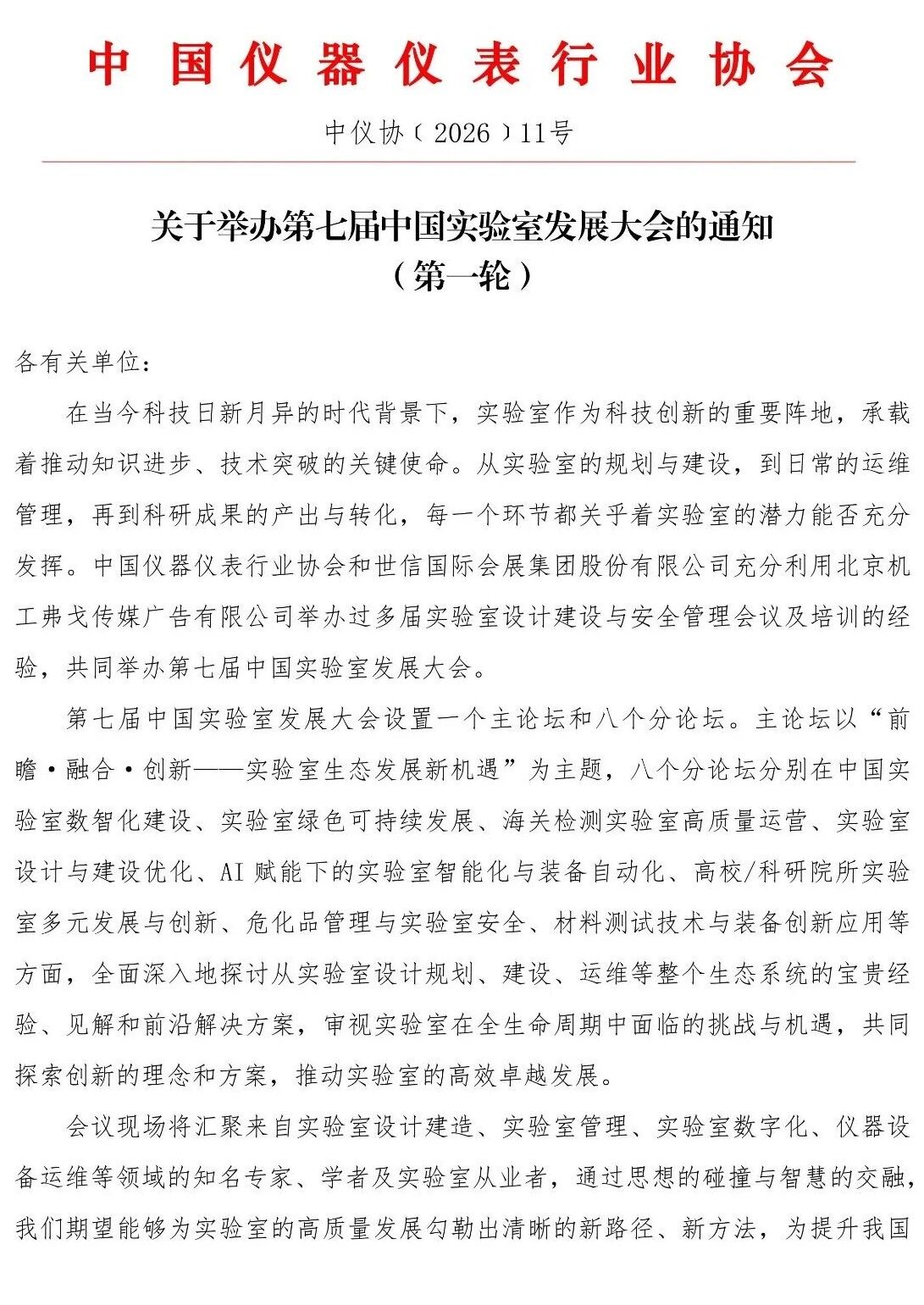 在當今科技日新月異的時代背景下,實驗室作為科技創(chuàng)新的重要陣地,承載著推動知識進步、技術突破的關鍵使命。從實驗室的規(guī)劃與建設,到日常的運維管理,再到科研成果的產(chǎn)出與轉(zhuǎn)化,每一個環(huán)節(jié)都關乎著實驗室的潛力能否充分發(fā)揮。由中國儀器儀表行業(yè)協(xié)會和世信國際會展集團股主辦的第七屆中國實驗室發(fā)展大會將于2026年5月29-30日在國家會議中心二期舉辦!誠摯邀請業(yè)界同仁相聚北京,共襄盛舉!